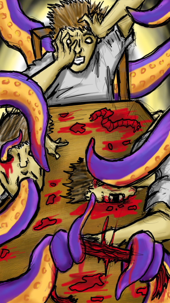 It wasn’t the screaming or the blood that made me think I was insane. It was mostly the few large tentacles that had been tearing my friends apart for the last hour.